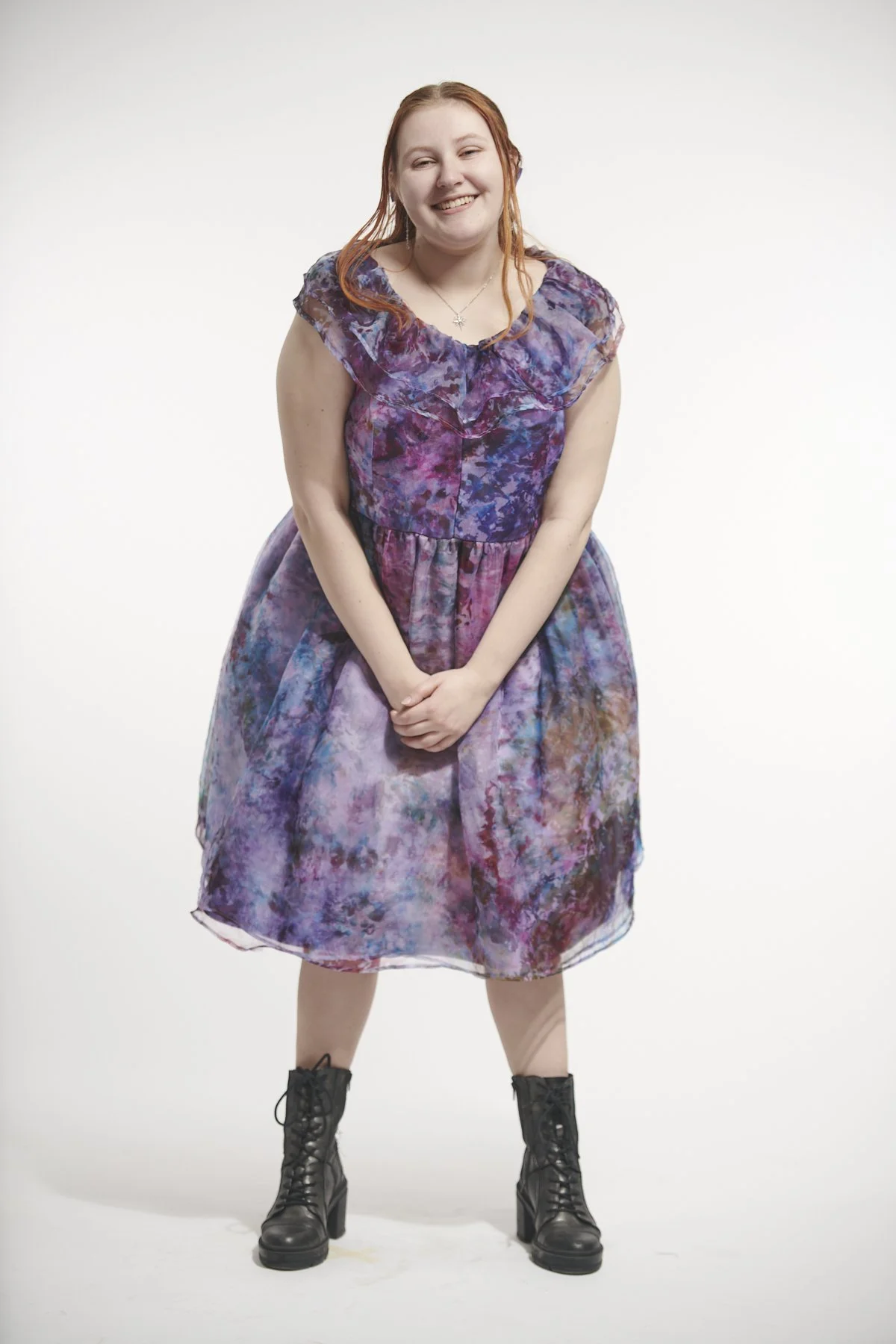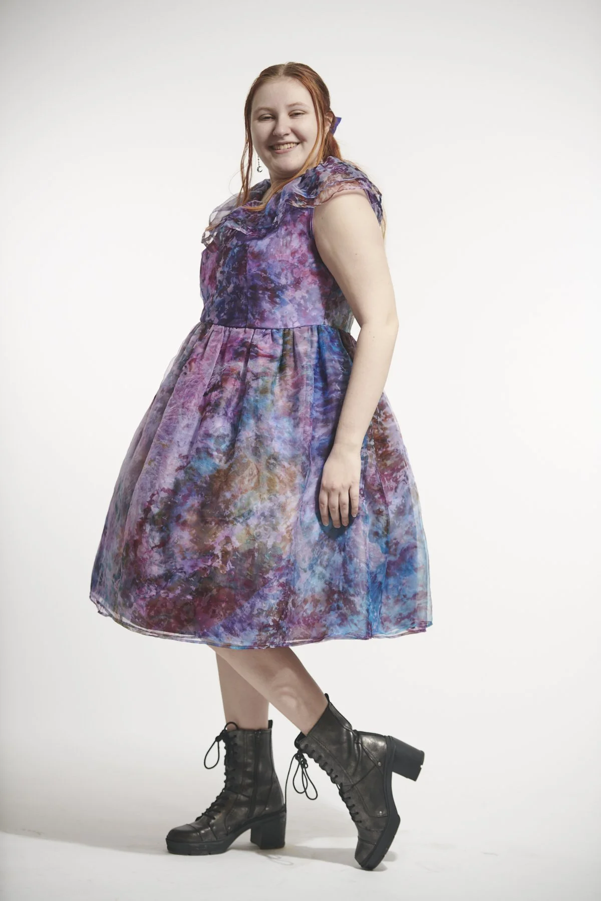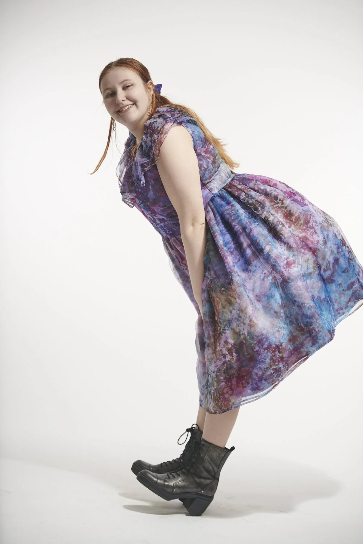 This dress was made as a custom size 16 and was Designed, Pattern Drafted, Textile Dyed, Constructed, and Modeled by Madison Redler.